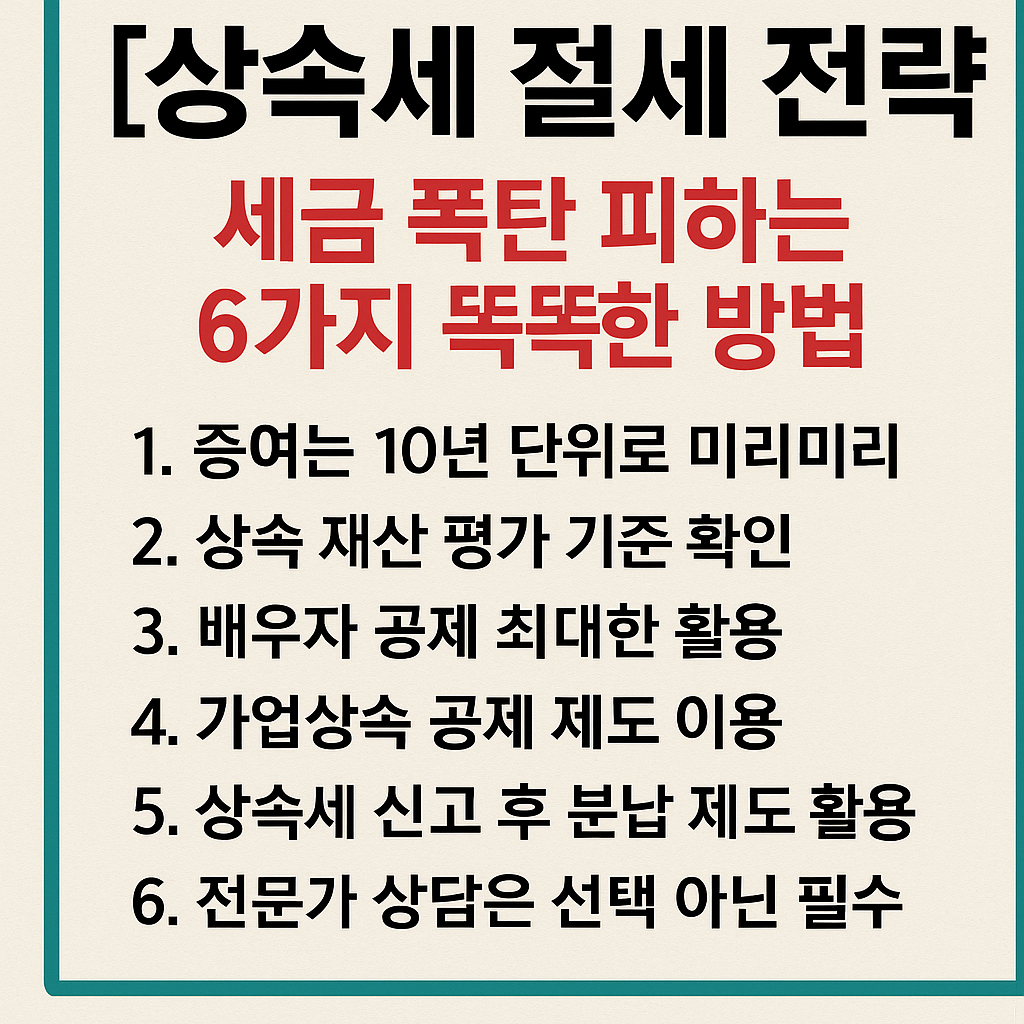 상속세는 갑작스러운 부모님의 사망 이후 맞닥뜨리는 큰 재정 부담 중 하나입니다. 하지만 미리 알고 준비하면 세금을 합법적으로 줄일 수 있는 절세 전략이 존재합니다. 이번 글에서는 세무사가 추천하는 상속세 절세 전략을 6가지로 정리해드리겠습니다.